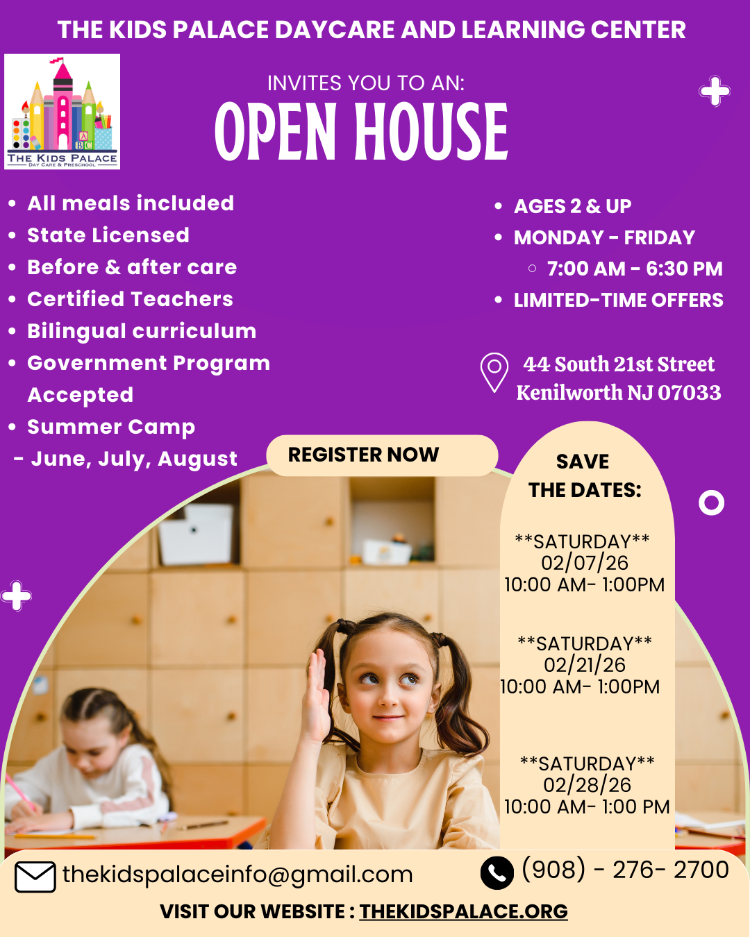 We’re excited to invite families to our Open House! This is a great opportunity to tour our center, meet our caring staff, and learn more about our programs for children ages 2.5–5 years old.